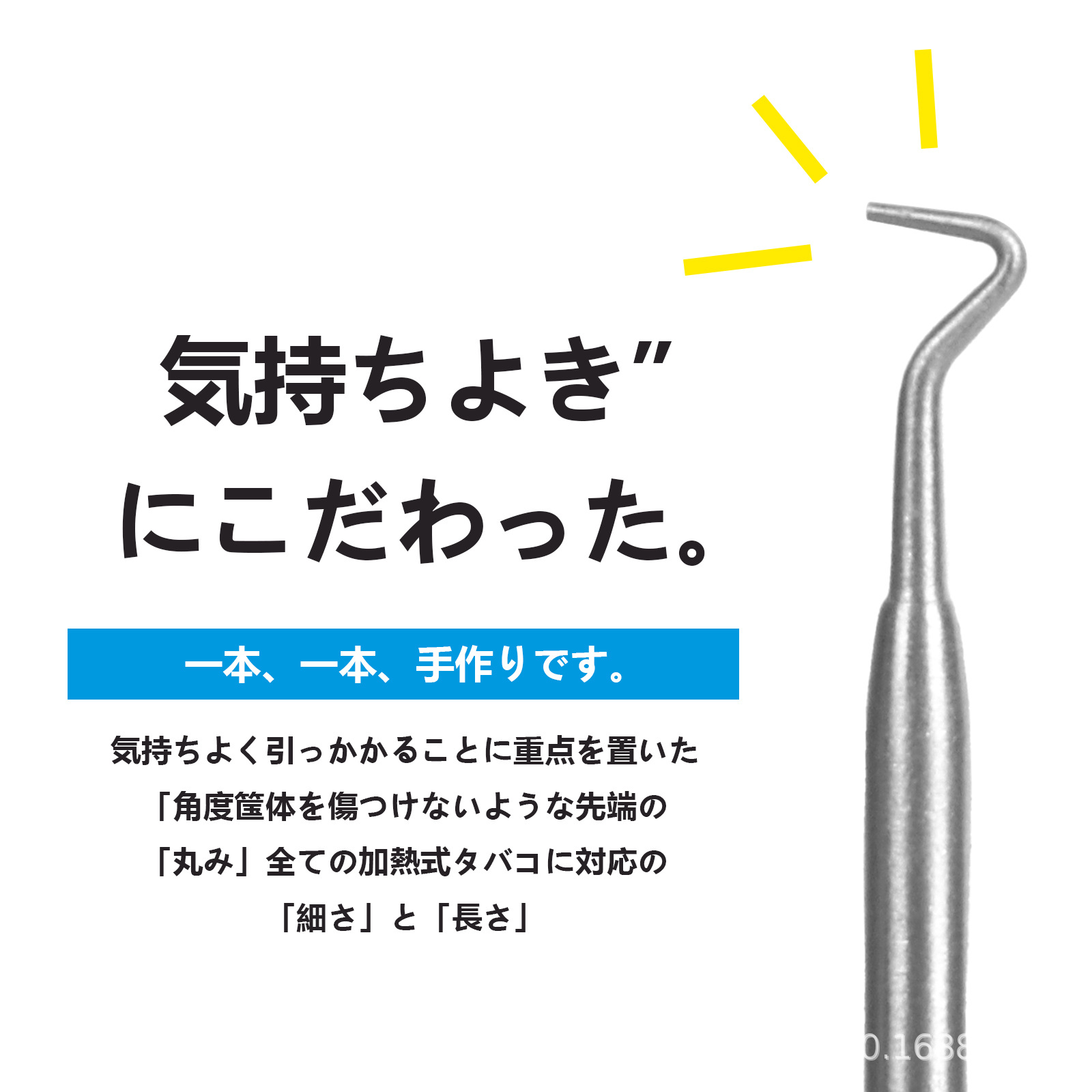 本產品採用雙功能設計,一端為【煙彈移除鉤】,可輕鬆勾出卡在加熱槽內的煙彈;另一端為【清潔毛刷】,可有效清理加熱棒周圍殘留的菸屑與焦油。無需再額外準備多種工具,大幅提升使用便利性。