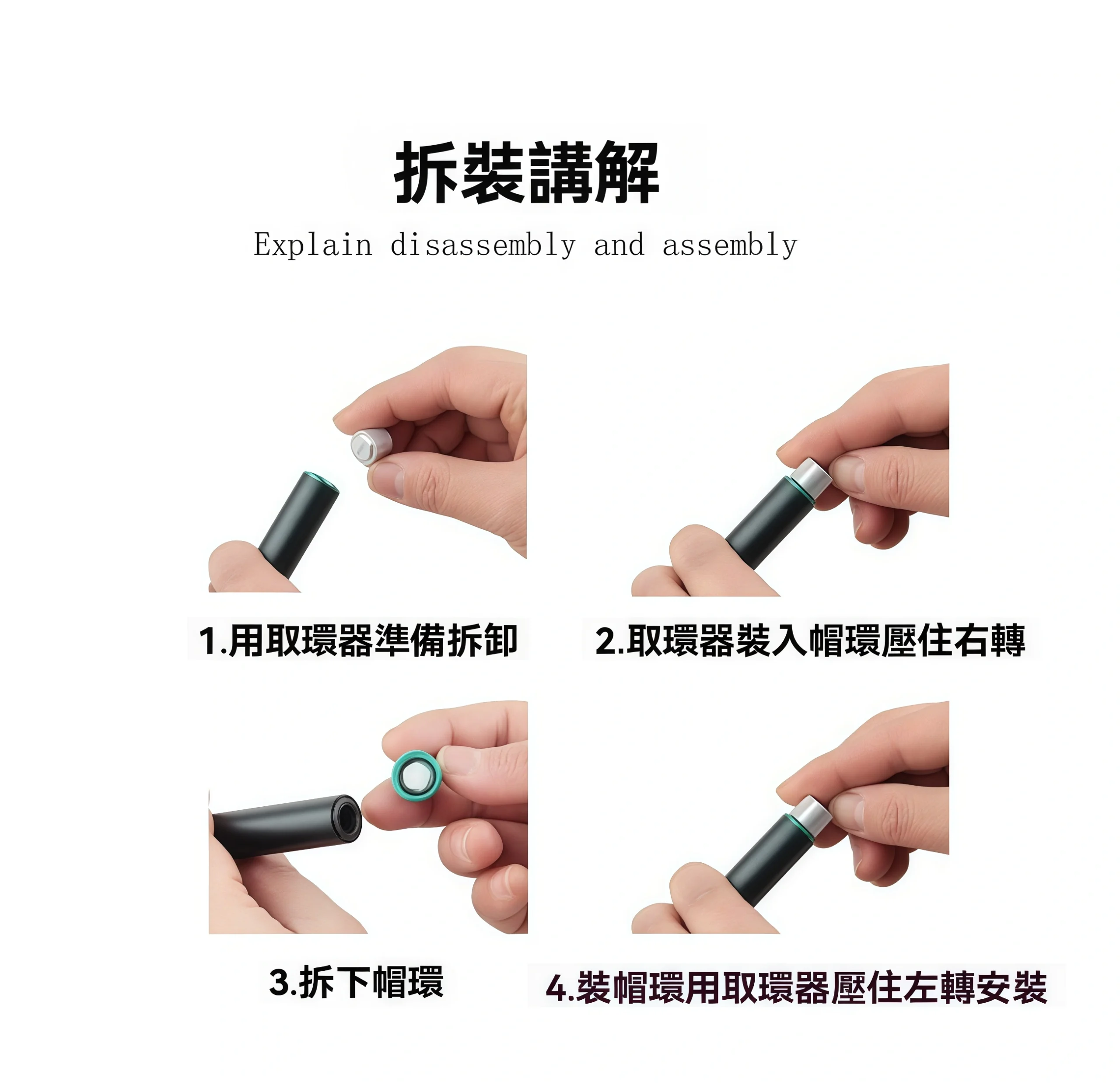 對準新帽環,用取環器壓住右轉即可完成安裝