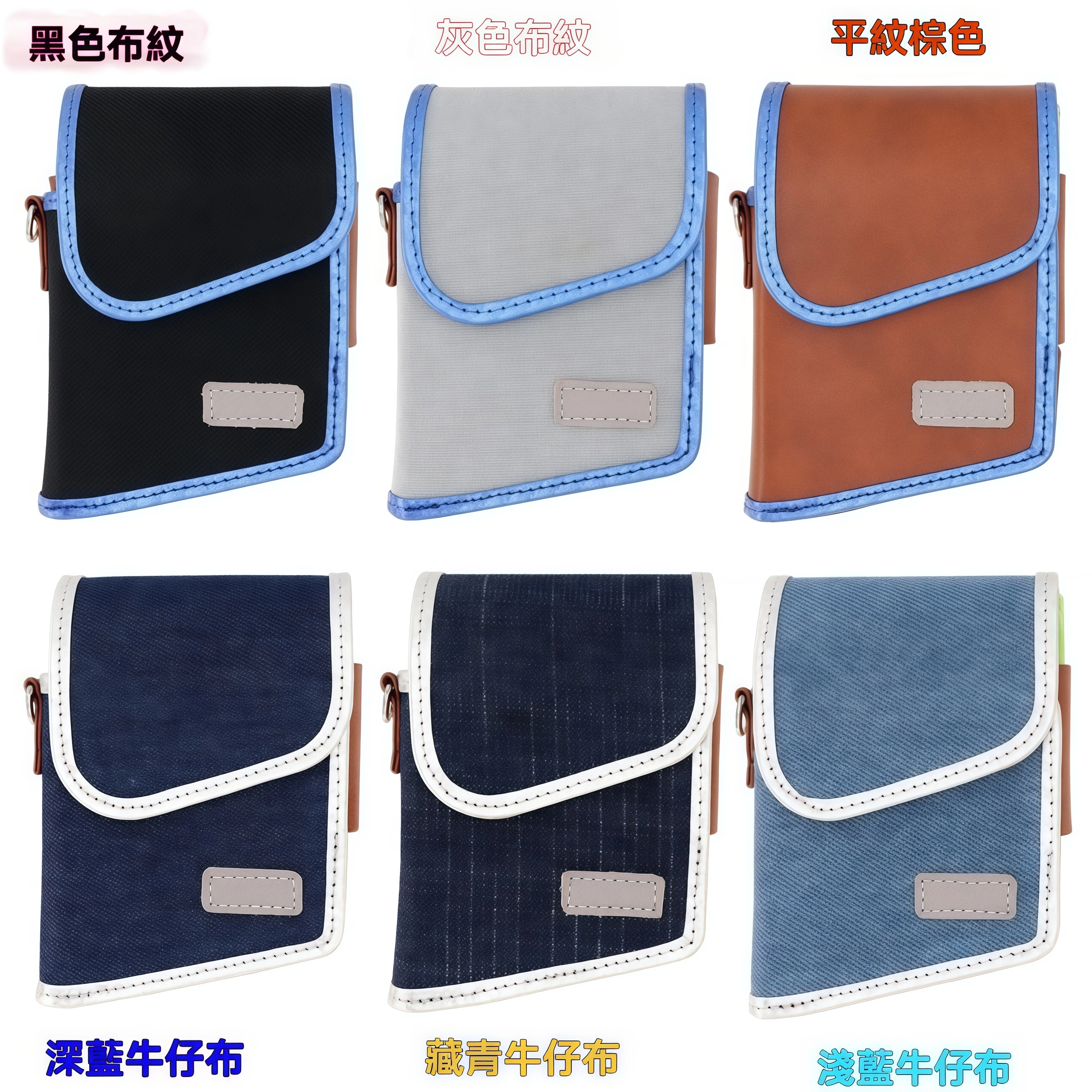 藏青牛仔布, 深藍牛仔布, 淺藍牛仔布, 黑色布紋, 灰色布紋, 平紋棕色